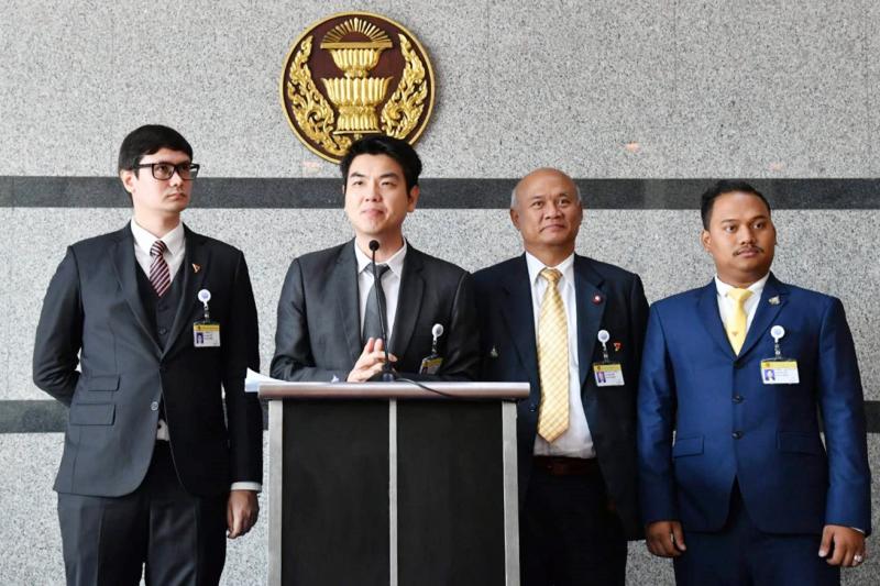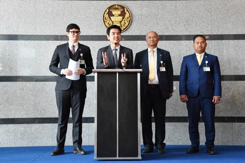 (มหาชน) นายปิยบุตร แสงกนกกุล สมาชิกสภาผู้แทนราษฎรพรรคอนาคตใหม่ และคณะ แถลงข่าว