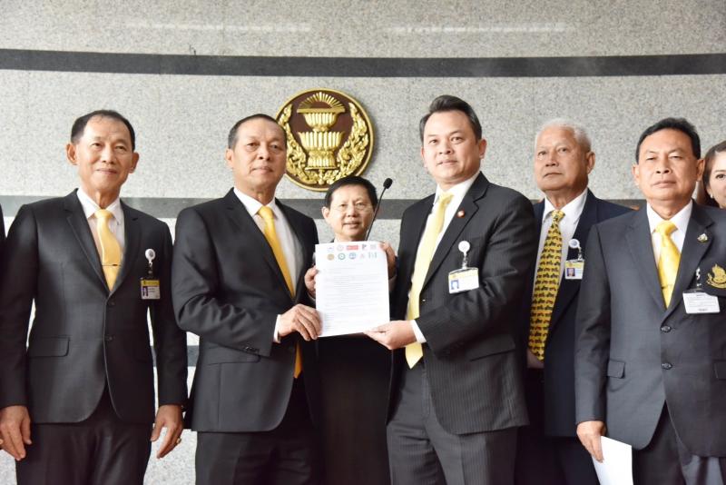 สมาชิกสภาผู้แทนราษฎรพรรคพลังประชารัฐ เป็นตัวแทนรับมอบร่างนโยบายจากกลุ่ม ๑๐ พรรคการเมือง