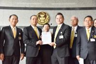 รับมอบร่างนโยบายจากกลุ่ม ๑๐ พรรคการเมือง นำโดย นายสมเกียรติ ศรลัมพ์ สมาชิกสภาผู้แทน