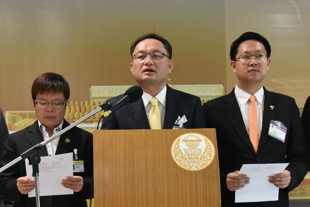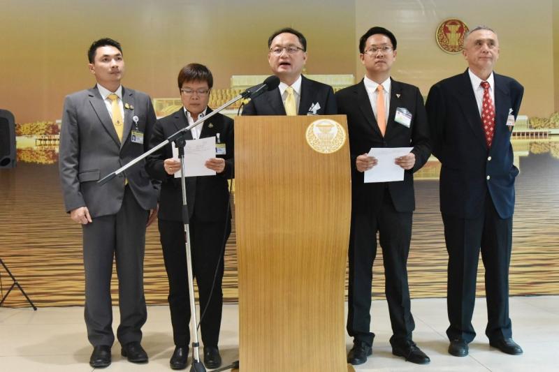 โฆษกกรรมาธิการวิสามัญพิจารณาการขยายสัญญาสัมปทานทางด่วนและรถไฟฟ้า (บีทีเอส) และคณะ ร่วมกันแถลงข่าว