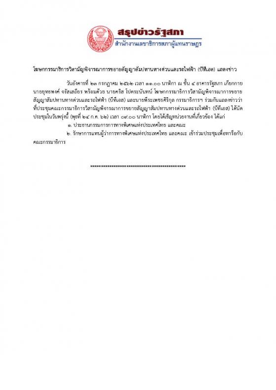 วันอังคารที่ ๒๓ กรกฎาคม ๒๕๖๒ เวลา ๑๑.๐๐ นาฬิกา ณ ชั้น ๔ อาคารรัฐสภา เกียกกาย