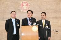 นายยุทธพงศ์ จรัสเสถียร พร้อมด้วยนายคริส โปตระนันทน์ โฆษกคณะกรรมาธิการวิสามัญพิจารณาศึกษาการขยายสัญญาสัมปทานทางด่วนและรถไฟฟ้า (บีทีเอส) สภาผู้แทนราษฎรและนายจิรพงษ์ ทรงวัชราภรณ์กรรมาธิการฯ แถลงผลการประชุม