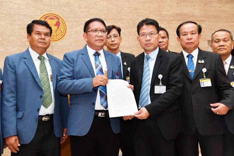 นายคารม พลพรกลาง สมาชิกสภาผู้แทนราษฎรแบบบัญชีรายชื่อ พรรคอนาคตใหม่ รับหนังสือจาก