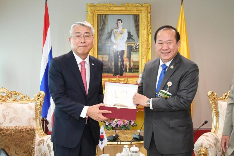 พลเรือเอก อิทธิคมน์ ภมรสูต ประธานกลุ่มมิตรภาพสมาชิกรัฐสภาไทย - เกาหลีใต้ ให้การรับรองนายลี อุก ฮอน เอกอัครราชทูตสาธารณรัฐเกาหลีประจำประเทศไทย