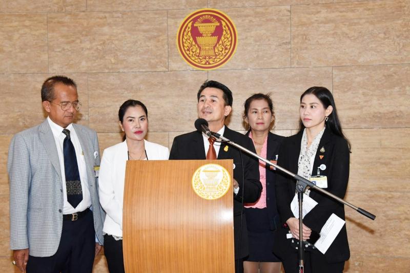 สมาชิกสภาผู้แทนราษฎรพรรคเพื่อไทย รับหนังสือจากตัวแทนกลุ่มองค์กรตรวจสอบการธำรงไว้ซึ่งหลักนิติธรรมกรณีการเข้าดำรงตำแหน่งนายกรัฐมนตรี