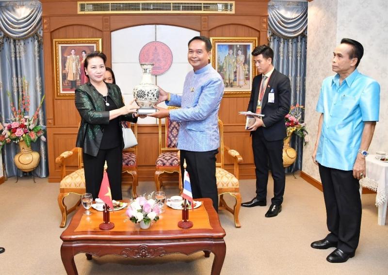 วันพุธที่ ๒๘ สิงหาคม ๒๕๖๒ เวลา ๐๙.๐๐ นาฬิกา นายศุภชัย โพธิ์สุ รองประธานสภาผู้แทนราษฎร คนที่สอง นำ H.E. Mrs. Nguyen Thi Kim Ngan ประธานสภาแห่งชาติสาธารณรัฐสังคมนิยมเวียดนาม และคณะ เดินทางไป จ.อุดรธานี โดยมี นายวัฒนา พุฒิชาติ ผู้ว่าราชการจังหวัดอุดรธานี ให้การต้อนรับ ในโอกาสนี้ ผู้ว่าราชการจังหวัดอุดรธานี ได้เข้าเยี่ยมคารวะประธานสภาแห่งชาติสาธารณรัฐสังคมนิยมเวียดนาม ด้วย เวลา ๑๐.๓๐ นาฬิกา ณ บ้านหนองโอน รองประธานสภาผู้แทนราษฎร คนที่สอง นำคณะ เยี่ยมชมพิพิธภัณฑ์ โฮจิมินห์ และพบปะกับกลุ่มคนไทยเชื้อสายเวียดนาม พร้อมทั้งร่วมปลูกต้นไม้เพื่อเป็นที่ระลึกด้วย จากนั้น เวลา ๑๒.๐๐ นาฬิกา ณ ร้านอาหารวีทีแหนมเนือง รองประธานสภาผู้แทนราษฎร คนที่สอง นำคณะรับประทานอาหารกลางวัน โดยมี นายวัฒนา พุฒิชาติ ผู้ว่าราชการจังหวัดอุดรธานี เป็นเจ้าภาพ ต่อมา เวลา ๑๓.๓๐ นาฬิกา ณ ต.หมากแข้ง อ.เมืองอุดรธานี รองประธานสภาผู้แทนราษฎร คนที่สอง นำคณะ เข้าเยี่ยมชมวัดสุนทรประดิษฐ์ และโรงเรียนสอนภาษาเวียดนาม