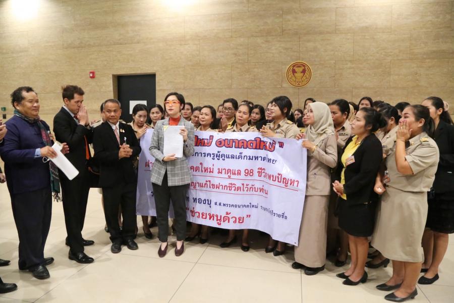 พรรคประชาธิปัตย์  รับยื่นหนังสือจากนางดาวรุ่ง คำวงศ์ ตัวแทนครูผู้ดูแลเด็ก