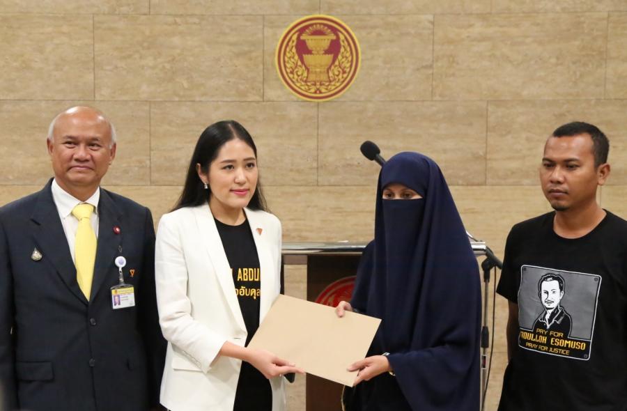 และคณะ รับหนังสือจาก นายโมฮำมัด รอฮมัด มามุ ญาติของนายอับดุลเลาะ