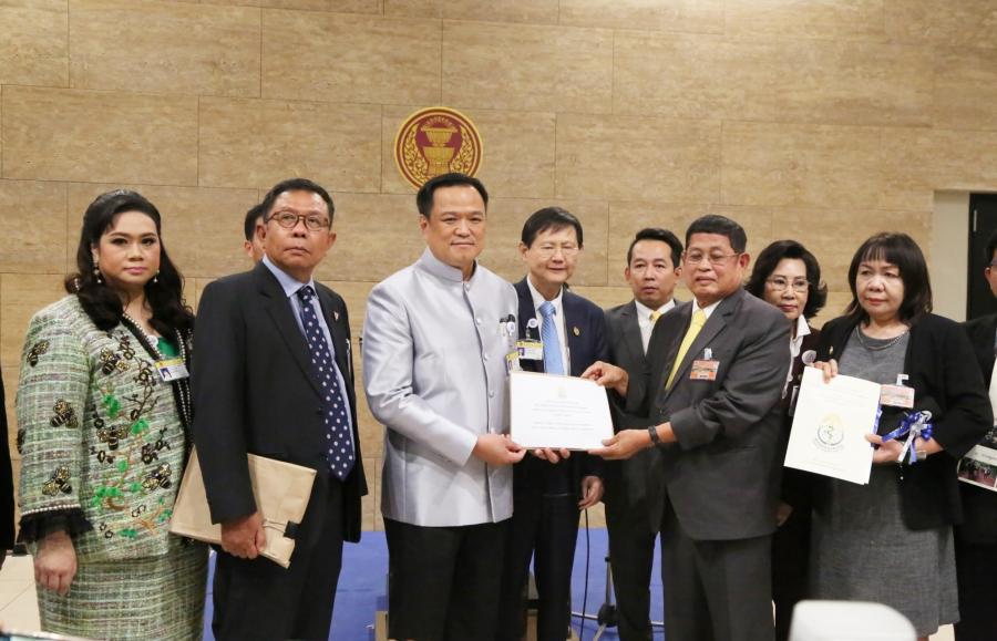 นายอนุทิน ชาญวีรกุล รองนายกรัฐมนตรี และรัฐมนตรีว่าการกระทรวงสาธารณสุข รับหนังสือ
