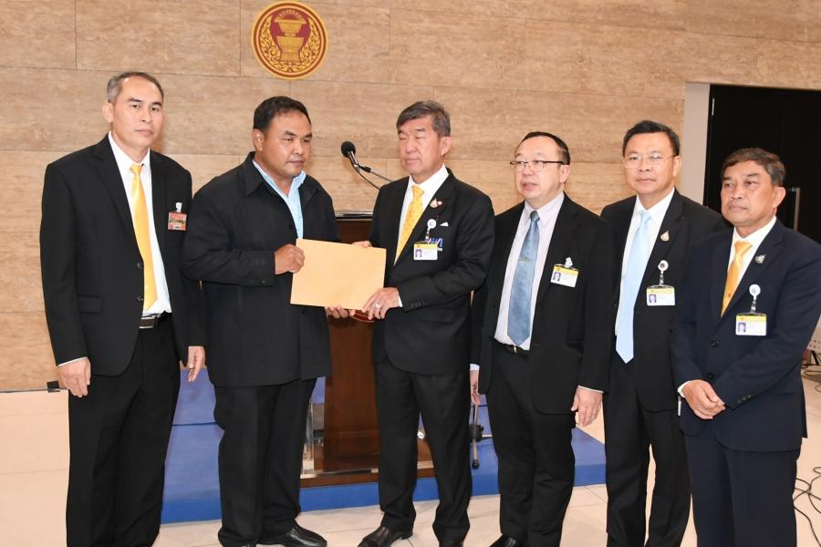 เกียกกาย นายชูวิทย์ พิทักษ์พรพัลลภ สมาชิกสภาผู้แทนราษฎรพรรคเพื่อไทย รับยื่นหนังสือ