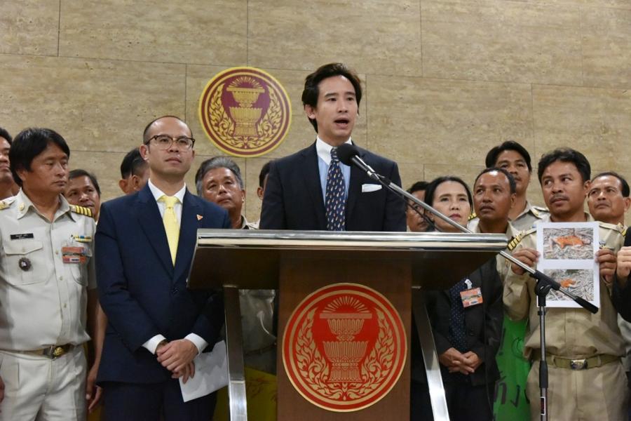 นายพิธา ลิ้มเจริญรัตน์ ประธานคณะกรรมาธิการที่ดิน ทรัพยากรธรรมชาติและสิ่งแวดล้อม แถลงรับปัญหาความเดือดร้อนของประชาชน ๒ ประเด็น