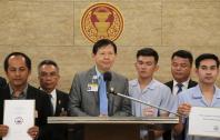 เกียกกาย นายระวี มาศฉมาดล สมาชิกสภาผู้แทนราษฎรพรรคพลังธรรมใหม่ รับยื่นหนังสือ