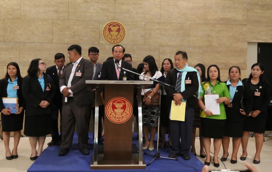 รศ.สุรวาท ทองบุ สมาชิกสภาผู้แทนราษฎรพรรคอนาคตใหม่ รับยื่นหนังสือจากตัวแทนข้าราชการ ครูผู้ดูแลเด็ก