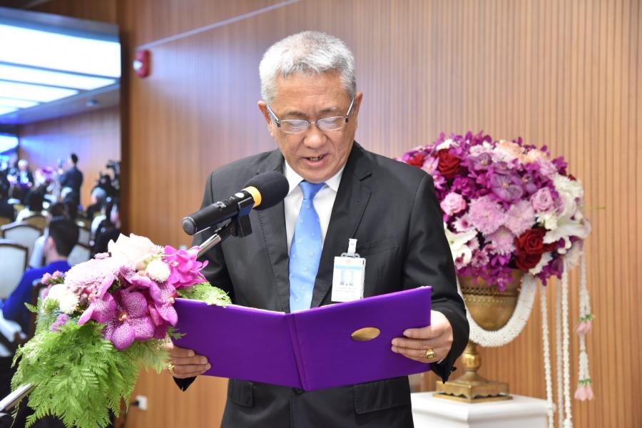 เลขาธิการ สภาผู้แทนราษฎร ในฐานะประธานกรรมการรางวัลพานแว่นฟ้า ปี ๒๕๖๒ กล่าวรายงาน