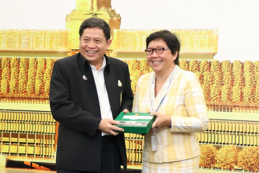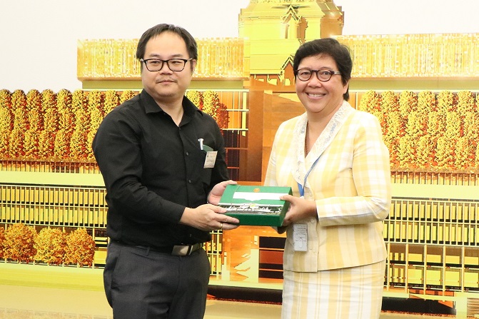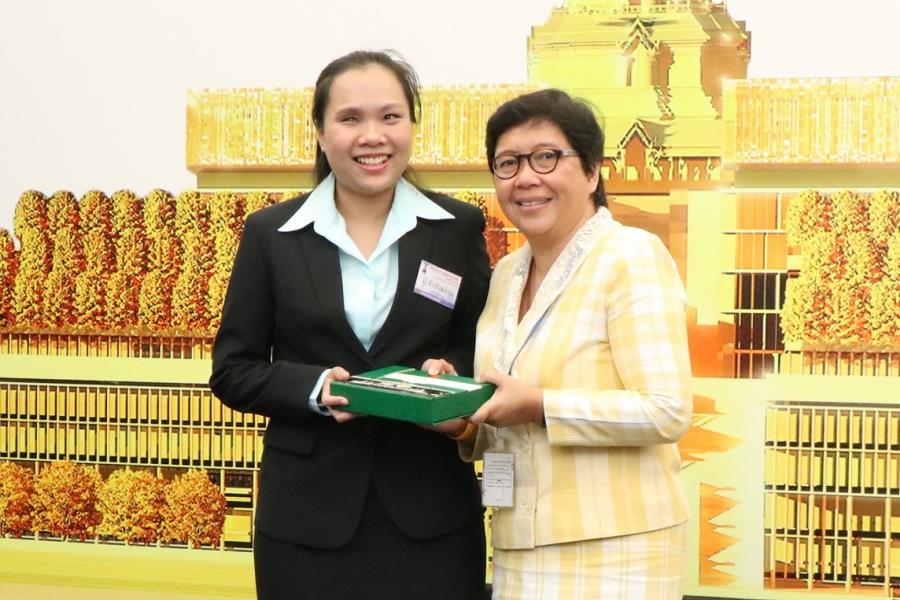 จากนั้น น.ส.สุภาสินี ขมะสุนทร รองเลขาธิการสภาผู้แทนราษฎร มอบของที่ระลึกเพื่อเป็นการแสดง