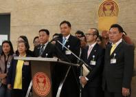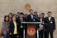 เกียกกาย นายอภิชาติ ศิริสุนทร รับยื่นหนังสือจากนายขวัญเมือง สุจิตต์ ประธานกลุ่มสัจจ