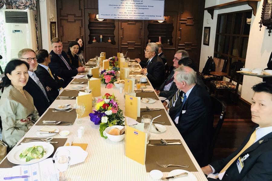 ประธานกลุ่มมิตรภาพสมาชิกรัฐสภาไทย-สหราชอาณาจักรฯ พร้อมด้วยคณะกรรมการบริหาร กลุ่มมิตรภาพฯ เป็นเจ้าภาพเลี้ยงรับรอง เพื่อเป็นเกียรติแก่สมาชิกสภาสามัญพรรคแรงงานและ ประธานกลุ่มมิตรภาพรัฐสภาสหราชอาณาจักรฯ - ไทย