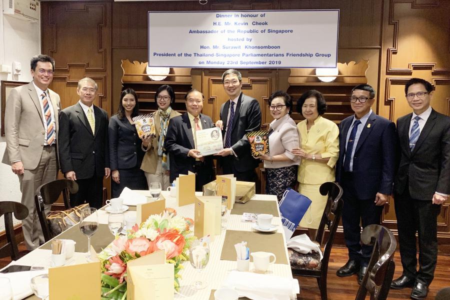 ประธานกลุ่มมิตรภาพสมาชิกรัฐสภาไทย - สิงคโปร์ เลี้ยงอาหารค่ำแก่นาย Kevin Cheok เอกอัครราชทูตสาธารณรัฐสิงคโปร์ และคณะ