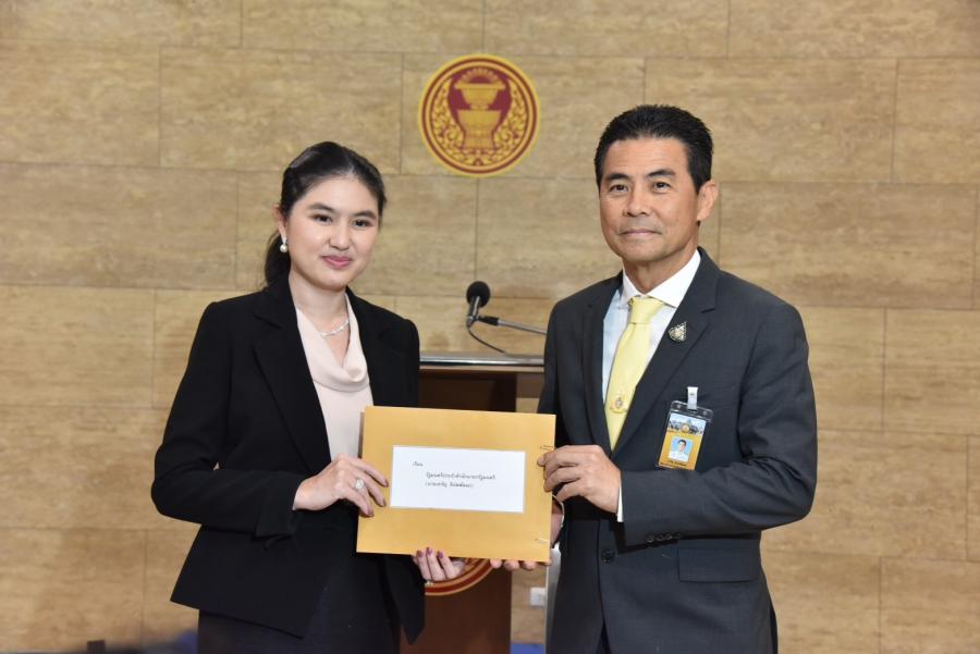 นายเทวัญ ลิปตพัลลภ รัฐมนตรีประจำสำนักนายกรัฐมนตรี รับยื่นหนังสือจาก