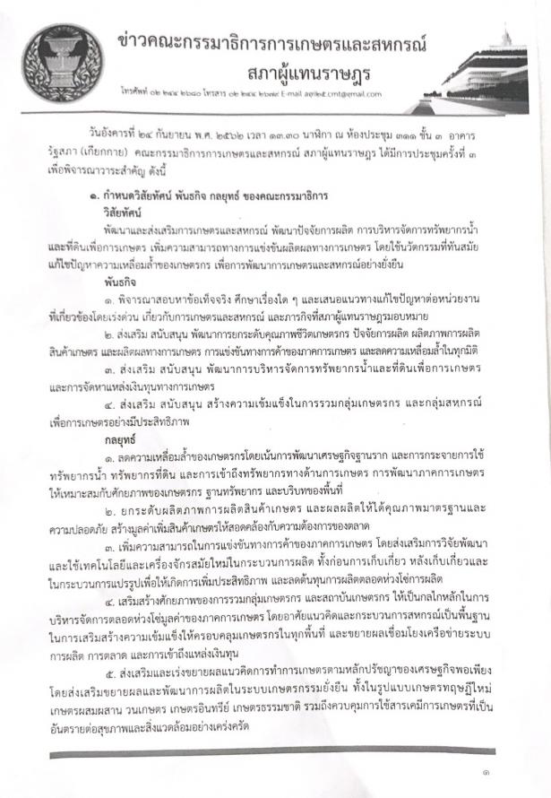 ๑. กำหนดวิสัยทัศน์ พันธกิจ และกลยุทธ์ของคณะกรรมาธิการ