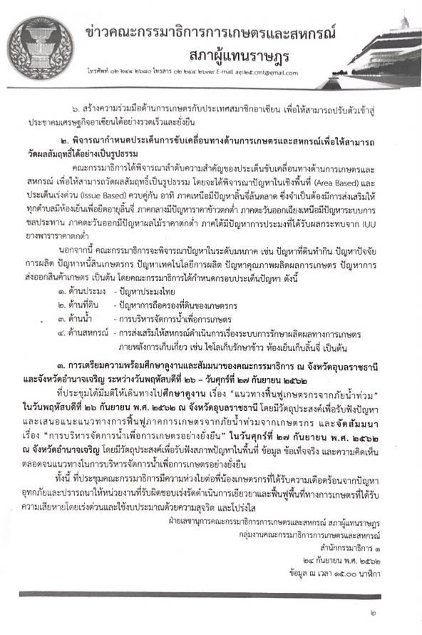 ๒.พิจารณากำหนดประเด็นการขับเคลื่อนทางด้านการเกษตรและสหกรณ์