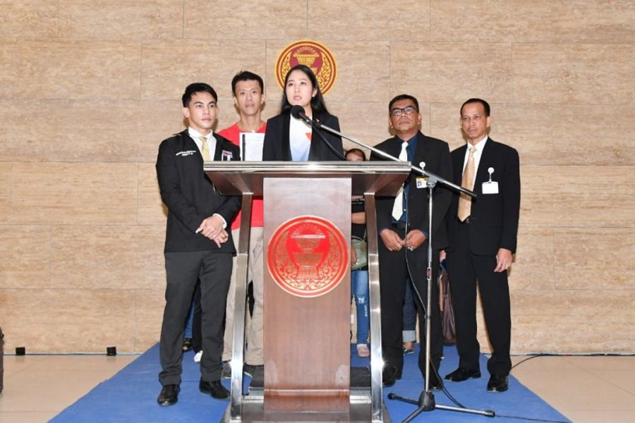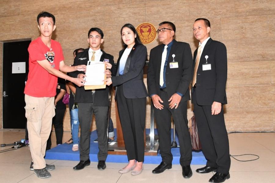 นางสาวพรรณิการ์ วานิช รองประธานคณะกรรมาธิการการกฎหมาย การยุติธรรมและสิทธิมนุษยชน และคณะ รับยื่นหนังสือจากนายสิรวิทย์ ช่วงแสน