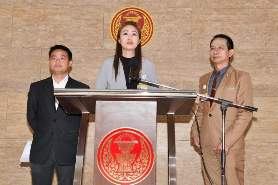 นางสาวนภาพร เพ็ชร์จินดา โฆษกคณะกรรมาธิการกิจการสภาผู้แทนราษฎร และคณะ แถลงข่าว
