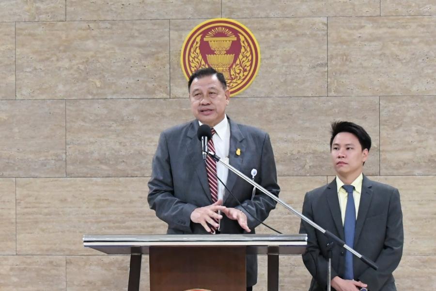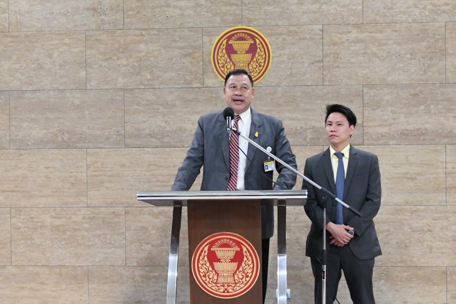 ณ จุดแถลงข่าว ชั้น ๑ อาคารรัฐสภา เกียกกาย นายวิรัช รัตนเศรษฐ ประธานคณะกรรมการ