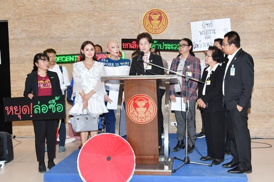 ประธานคณะกรรมาธิการกิจการเด็ก เยาวชน สตรี ผู้สูงอายุ ผู้พิการ กลุ่มชาติพันธุ์ และผู้มีความหลากหลายทางเพศ สภาผู้แทนราษฎร รับหนังสือจากตัวแทนเครือข่ายพนักงานบริการ