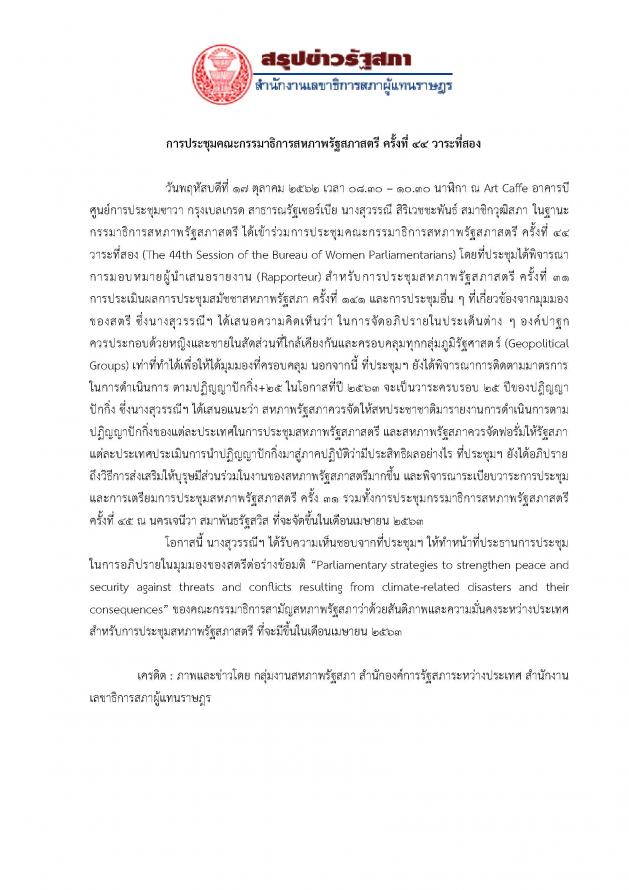 ครั้งที่ ๔๔ วาระที่สอง (The 44th Session of the Bureau of Women Parliamentarians)