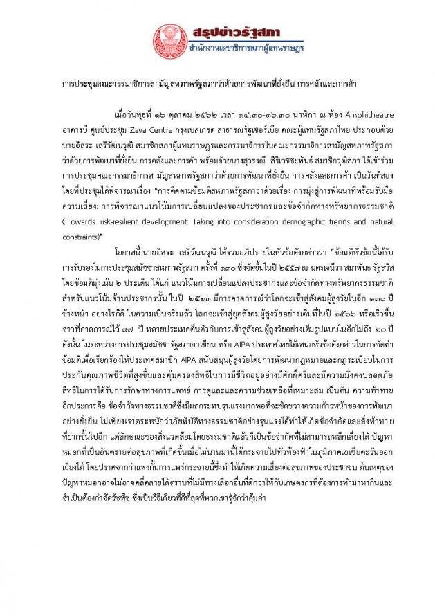 การติดตามข้อมติสหภาพรัฐสภาว่าด้วยเรื่อง การมุ่งสู่การพัฒนาที่พร้อมรับมือ ความเสี่ยง: การพิจารณาแ