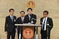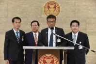 รองประธานคณะ กมธ. การเกษตรและสหกรณ์ คนที่หนึ่ง นายสัมฤทธิ์ แทนทรัพย์ กมธ. พร้อมด้วย นายคำพอง เทพาคำ และนายเอกชัย ทรงอำนาจเจริญ โฆษกคณะ กมธ. แถลงข่าว
