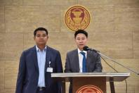 นายชัยชนะ เดชเดโช และนายอรรถกร ศิริลัทยากร โฆษกคณะกรรมาธิการวิสามัญพิจารณาร่างพระราชบัญญัติงบประมาณรายจ่าย พ.ศ. ๒๕๖๓ แถลงข่าว