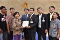 นายอนุดิษฐ์ นาครทรรพ พร้อมด้วย สมาชิกสภาผู้แทนราษฎร พรรคเพื่อไทย รับยื่นหนังสือ