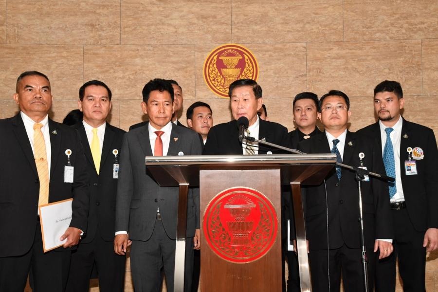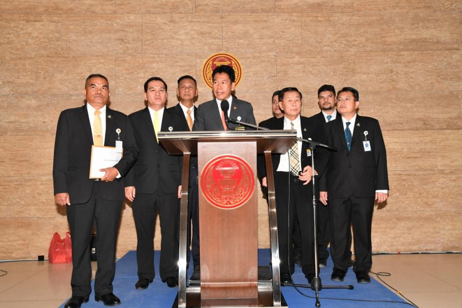 จากนั้น นายธีรัจชัย พันธุมาศ โฆษกคณะ กมธ. ได้แถลงถึงกรณีที่ตำรวจออกหมายเรียก