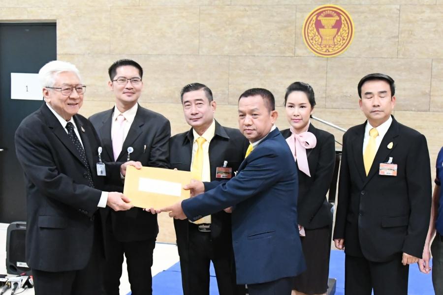 หัวหน้าพรรคไทยศรีวิไลย์ ในฐานะฝ่ายค้านอิสระ รับยื่นหนังสือจาก นายชัชชัย ด้วงพิทักษ์ ประธานสภา