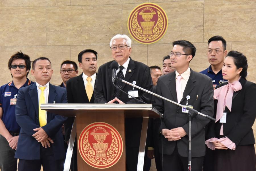 เกียกกาย นายพิเชษฐ สถิรชวาล หัวหน้าพรรคประชาธรรมไทย พร้อมด้วย นายมงคลกิตติ์ สุขสินธารานนท์