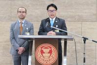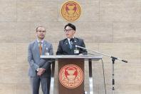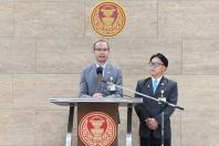 เกียกกาย นายณัฐพล สืบศักดิ์วงศ์ และนายนิติพล ผิวเหมาะ ส.ส.พรรคอนาคตใหม่ ร่วมกันแถลงข่าวขอบคุณ
