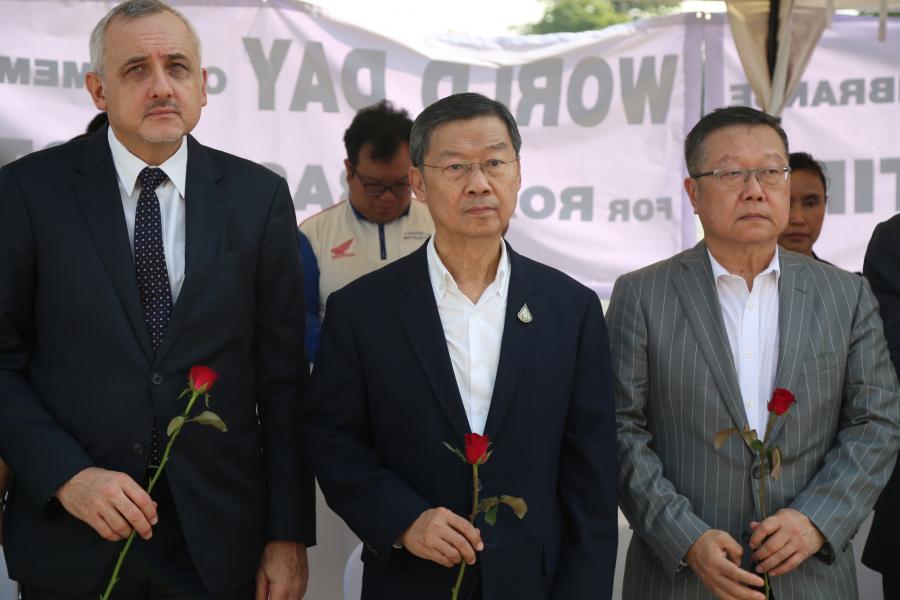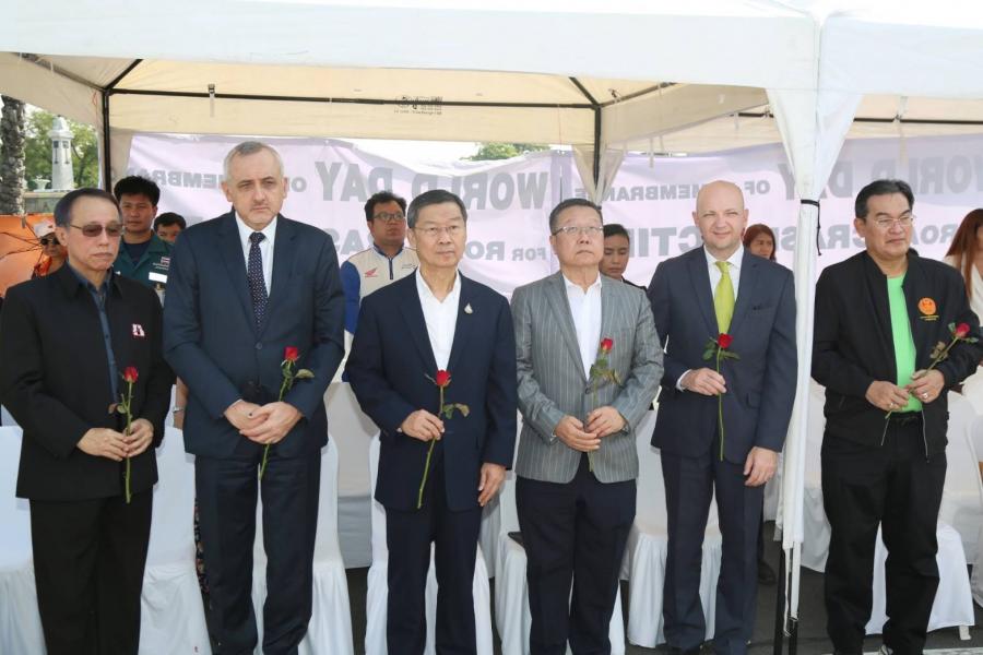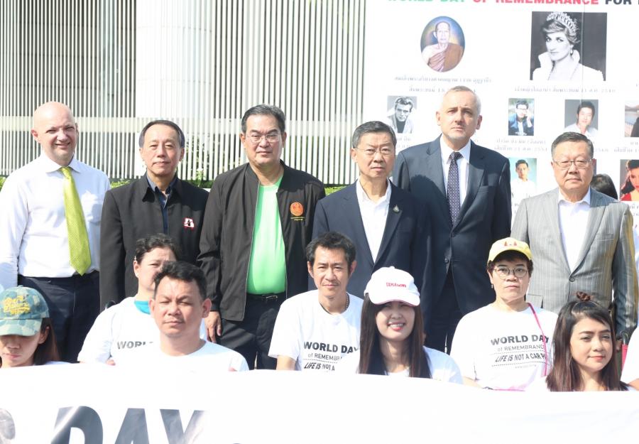 | วันอาทิตย์ที่ ๑๗ พฤศจิกายน ๒๕๖๒ เวลา ๐๙.๐๐ นาฬิกา ณ บริเวณหน้าอาคารสำนักงานองค์การ สหประชาชาติประจำประเทศไทย ถนนราชดำเนิน กรุงเทพฯ นายสุรชัย เลี้ยงบุญเลิศชัย สมาชิกวุฒิสภา และประธานคณะกรรมการบูรณาการกู้ชีพฉุกเฉินและความปลอดภัยทางถนน ในฐานะประธานเครือข่าย นิติบัญญัติเพื่อถนนปลอดภัยในภูมิภาคอาเซียน เป็นประธานในกิจกรรม วันโลกรำลึกถึงเหยื่อผู้สูญเสีย จากอุบัติเหตุทางถนน (World Day of Remembrance for Road Traffic Victims) พร้อมทั้งได้กล่าว ในนามตัวแทนประเทศไทย โดยมี Dr. Liviu Vedrasco ผู้แทนองค์การอนามัยโลก ร่วมกล่าวในนามองค์การ อนามัยโลกประจำประเทศไทย นายฟิลิป คริเดลก้า เอกอัครราชทูตเบลเยี่ยมประจำประเทศไทย ร่วมกล่าว ในนามเอกอัครราชทูตเบลเยี่ยมประจำประเทศไทย และ นพ.แท้จริง ศิริพานิช เลขาธิการมูลนิธิเมาไม่ขับ กล่าวรายงาน ในการนี้ นายนิกร จำนง สมาชิกสภาผู้แทนราษฎรและประธานคณะอนุกรรมาธิการ พิจารณาศึกษาความปลอดภัยทางถนนและคมนาคม เครือข่ายเหยื่อเมาแล้วขับ ครอบครัวและญาติ ผู้สูญเสียจากอุบัติเหตุทางถนน กลุ่มอาสาสมัครผู้ถูกคุมประพฤติในคดีเมาแล้วขับ กลุ่มอาสากู้ภัย จากมูลนิธิป่อเต็กตึ๊ง ผู้แทนหน่วยงานภาครัฐ ภาคเอกชน ภาคประชาชน และภาคประชาสังคม เข้าร่วมกิจกรรม จากนั้น นายสุรชัย เลี้ยงบุญเลิศชัย Dr. Liviu Vedrasco นายฟิลิป คริเดลก้า และ นายนิกร จำนง ตลอดจน ผู้สูญเสีย ผู้แทนหน่วยงานภาครัฐ ภาคเอกชน และผู้เข้าร่วมกิจกรรม ร่วมยืนไว้อาลัยและวางดอกกุหลาบต่อหน้ารูปผู้สูญเสียจากอุบัติเหตุทางถนน เพื่อรำลึกถึง ผู้จากไปจากอุบัติเหตุทางถนน สำหรับกิจกรรมดังกล่าว มูลนิธิเมาไม่ขับ ร่วมกับ สสส. และภาคี เครือข่ายรณรงค์ลดอุบัติเหตุภาครัฐ ภาคเอกชน จัดขึ้นโดยมีวัตถุประสงค์เพื่อรำลึกถึงเหยื่อ ผู้สูญเสียจากอุบัติเหตุทางถนน ซึ่งจำเป็นต้องอาศัยความร่วมมือจากทุกภาคส่วนที่เกี่ยวข้อง ความสูญเสียจากอุบัติเหตุบนท้องถนนในประเทศไทย เป็นปัญหาใหญ่ของประเทศ นำมา ซึ่งความสูญเสียในชีวิตและทรัพย์สินปีละ ๕ แสนล้านบาท และส่งผลให้คนไทยต้องเสียชีวิต ปีละ ๒ หมื่นคน บาดเจ็บอีก ๑ ล้านคน ทั้งนี้ ไม่รวมผู้พิการทุพพลภาพอีกประมาณ ๖ หมื่นคน ต่อปี ทำให้ประเทศไทยติดอันดับประเทศที่มีผู้เสียชีวิตบนท้องถนนสูงสุดในอันดับที่ ๙ และเป็น อันดับ ๑ ในทวีปเอเชีย อย่างไรก็ตามความสูญเสียจากอุบัติเหตุบนท้องถนนได้กลายเป็นภัย คุกคามประชากรของโลก ทั้งนี้ จากสถิติพบว่า ในแต่ละปีมีประชากรของโลกเสียชีวิต ๑ ล้านคน บาดเจ็บและพิการ กว่า ๑๐ ล้านคน ด้วยเหตุนี้ องค์การสหประชาชาติจึงเห็นความสำ