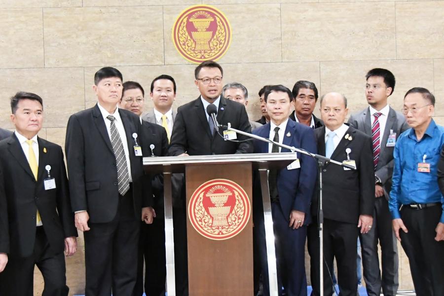 วันพุธที่ ๒๗ พฤศจิกายน ๒๕๖๒ เวลา ๑๓.๒๕ นาฬิกา ณ จุดแถลงข่าว ชั้น ๑ อาคารรัฐสภา