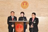 เกียกกาย น.ส.ศรีนวล บุญลือ พร้อมด้วย น.ส.กวินนาถ ตาคีย์ และพันตำรวจโท ฐนภัทร กิตติวงศา