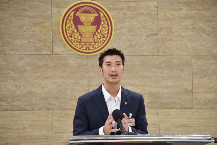 เกียกกาย นายธนาธร จึงรุ่งเรืองกิจ หัวหน้าพรรคอนาคตใหม่ แถลงข่าวลาออกจากการเป็นกรรมาธิการ