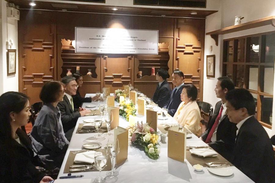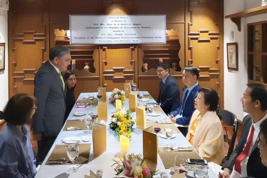 ประธานกลุ่มมิตรภาพสมาชิกรัฐสภาไทย ฟิลิปปินส์ พร้อมด้วยกรรมการบริหารกลุ่มมิตรภาพฯ เป็นเจ้าภาพงานเลี้ยงอาหารค่ำ เอกอัครราชทูตสาธารณรัฐฟิลิปปินส์ประจำประเทศไทย