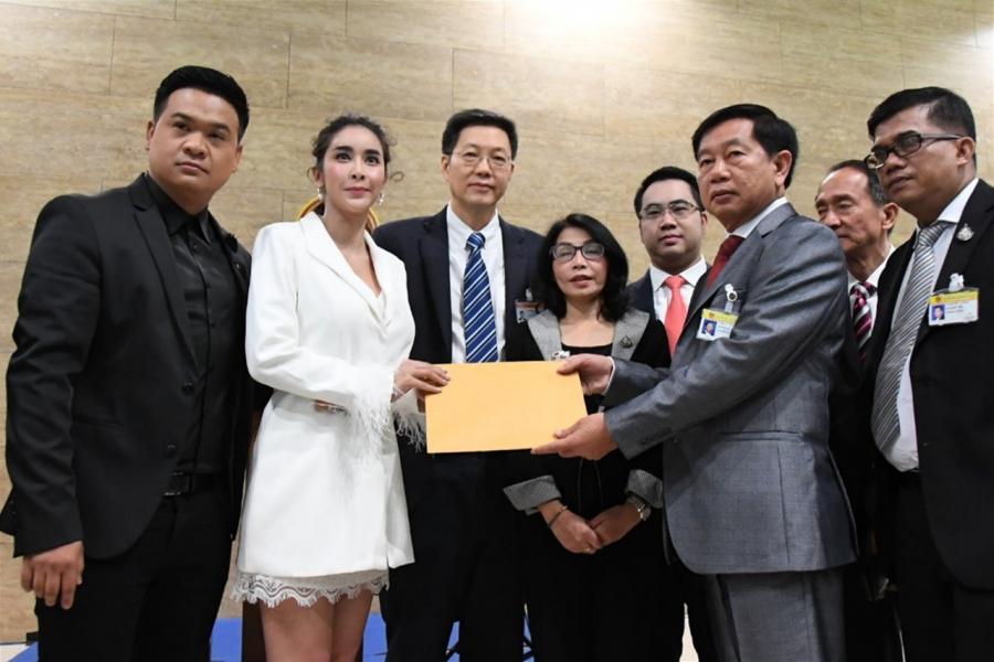 นายมานะ โลหะวณิชย์ ประธานคณะกรรมาธิการการคุ้มครองผู้บริโภค รับยื่นหนังสือจาก น.ส.สุคนธวา