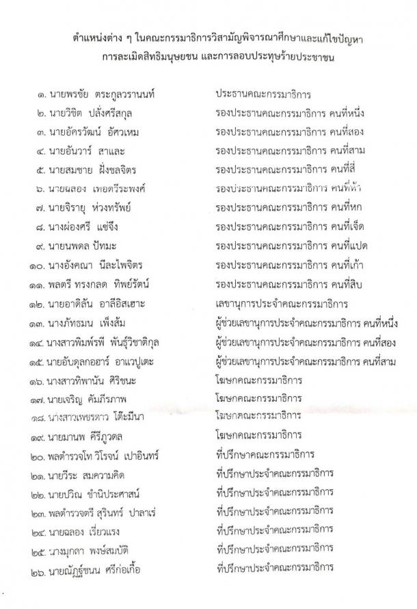 เพื่อพิจารณาแต่งตั้งตำแหน่งต่าง ๆ ในคณะ กมธ. โดยมีกรอบระยะเวลาในการทำงานจำนวน ๖๐ วัน