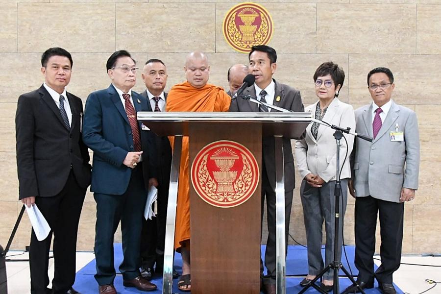 วันพฤหัสบดีที่ ๙ มกราคม ๒๕๖๓ เวลา ๑๐.๓๐ นาฬิกา ณ จุดแถลงข่าว ชั้น ๑ อาคารรัฐสภา เกียกกาย นายสุทิน คลังแสง ประธานคณะกรรมการประสานงานพรรคร่วมฝ่ายค้าน และ นายนิยม เวชกามา สมาชิกสภาผู้แทนราษฎรพรรคเพื่อไทย และคณะ พร้อมด้วย พระเมธีธรรมาจารย์ (เจ้าคุณประสาร) เลขาธิการศูนย์พิทักษ์พระพุทธศาสนาแห่งประเทศไทย ในฐานะ อนุ กมธ. พิจารณา ศึกษาด้านพระพุทธศาสนาและศาสนาอื่น ๆ ในคณะ กมธ. การศาสนา ศิลปะและวัฒนธรรม ร่วมกัน แถลงข่าวว่าคณะได้นำร่างพ.ร.บ.อุปถัมภ์และส่งเสริมพระพุทธศาสนาแห่งชาติ พ.ศ. ....พร้อมด้วย หลักการและเหตุผล พร้อมทั้งสรุปสาระสำคัญของร่าง พ.ร.บ.ประกอบกับเอกสารการดำเนินการ ตามมาตรา ๗๗ วรรคสอง พร้อมแนบรายชื่อผู้รับรองจำนวน ๒๐ คน เสนอต่อนายชวน หลีกภัย ประธานสภาผู้แทนราษฎร เมื่อวันที่ ๑๘ ธ.ค. ๖๒ โดยขณะนี้รอการบรรจุในระเบียบวาระ การประชุมสภาผู้แทนราษฎรต่อไป ซึ่งร่าง พ.ร.บ.ดังกล่าว จะสร้างความเข้มแข็งมั่นคงให้แก่พระพุทธศาสนามากยิ่งขึ้นและ ทำให้พระพุทธศาสนาได้รับการอุปถัมภ์จากรัฐอย่างครอบคลุม อันจะเป็นประโยชน์ต่อการ สืบทอดพระพุทธศาสนาให้มั่นคงและยั่งยืนต่อไป |