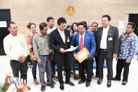 เกียกกาย นายเทวัญ ลิปตพัลลภ รัฐมนตรีประจำสำนักนายกรัฐมนตรี รับยื่นหนังสือจาก นายสุเนส