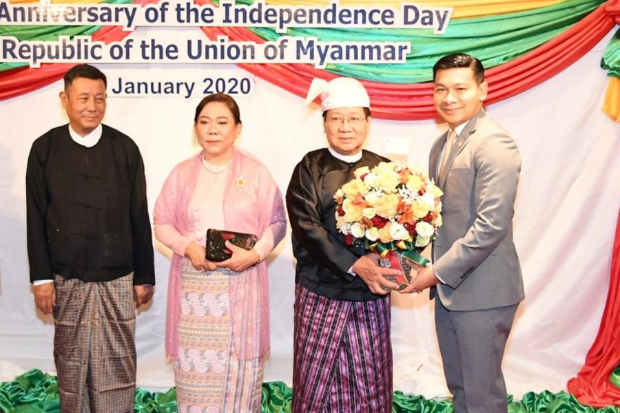 รองประธานสภาผู้แทนราษฎร คนที่สอง มอบหมายให้นายธนบวร สิริคุณากรกุล ผู้ช่วยเลขานุการ รองประธานสภาผู้แทนราษฎร เข้าร่วมงานเลี้ยงเฉลิมฉลองครบรอบ ๗๒ ปี วันประกาศอิสรภาพของสาธารณรัฐแห่งสหภาพเมียนมา