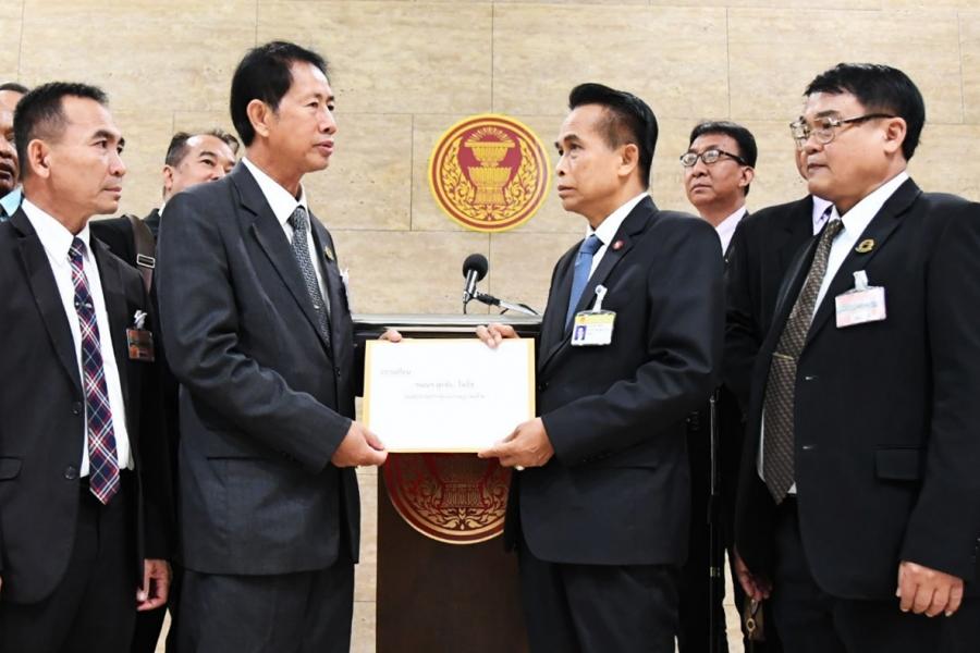 เกียกกาย นายศุภชัย โพธิ์สุ รองประธานสภาผู้แทนราษฎร คนที่สอง รับยื่นหนังสือจาก นายวีรบูล