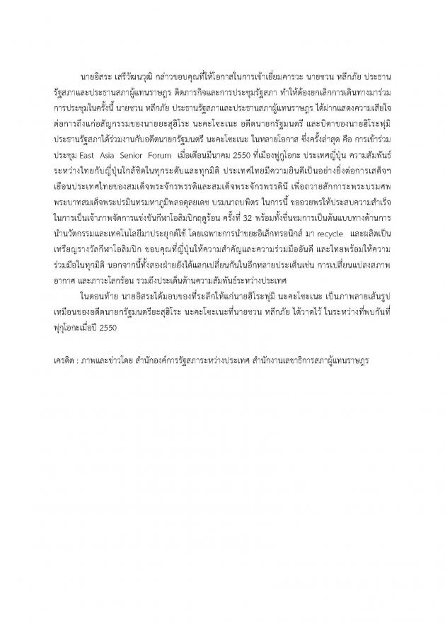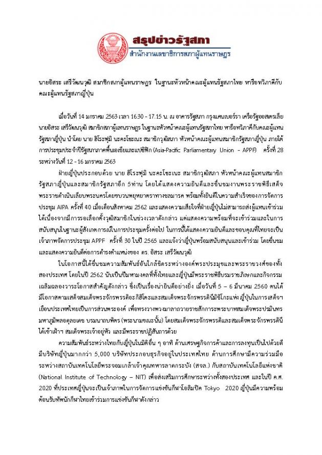 คณะผู้แทนรัฐสภาไทยหารือทวิภาคีกับคณะผู้แทนรัฐสภาญี่ปุ่น นำโดย นาย ฮิโระฟุมิ นะคะ